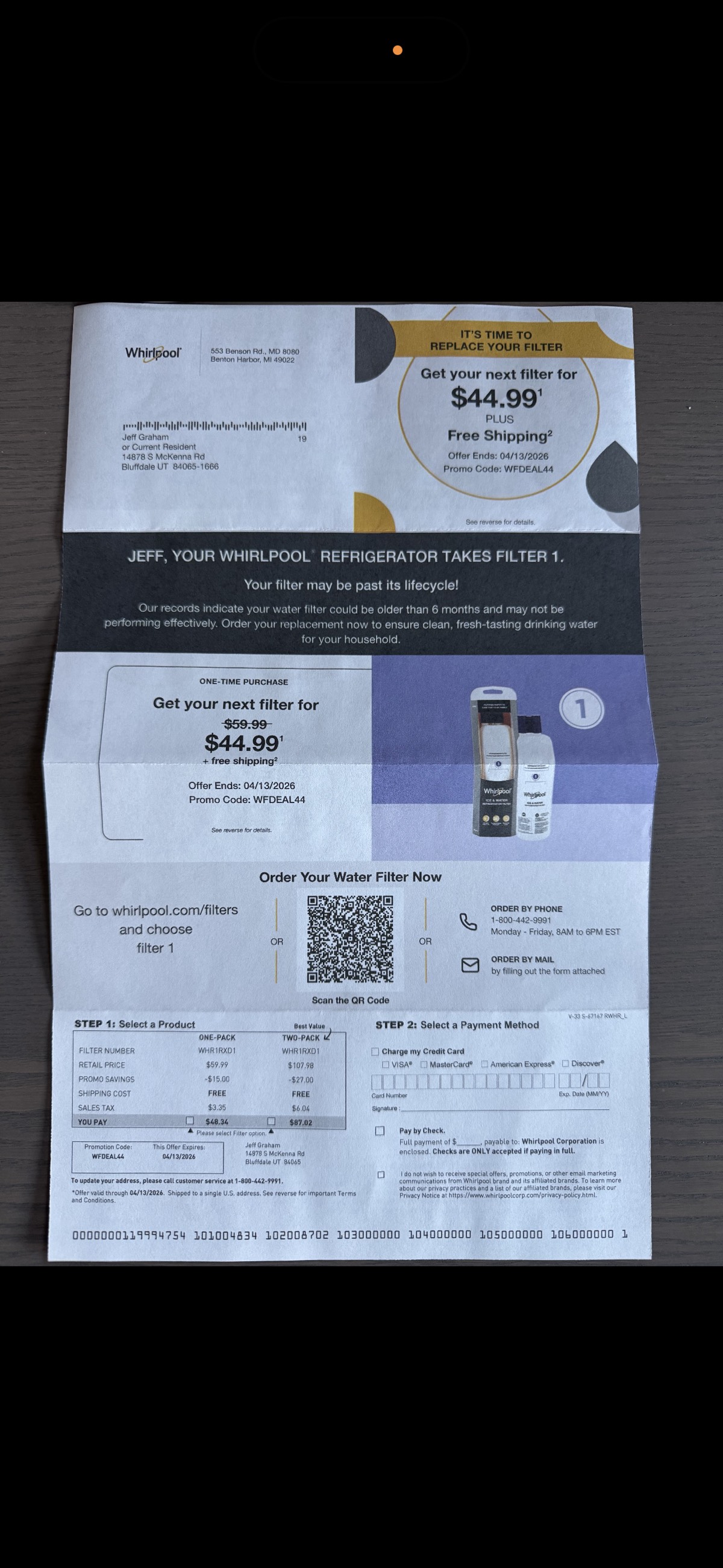 Get your next water filter for $44.99 plus free shipping, regularly $59.99 — Promo code: WFDEAL44