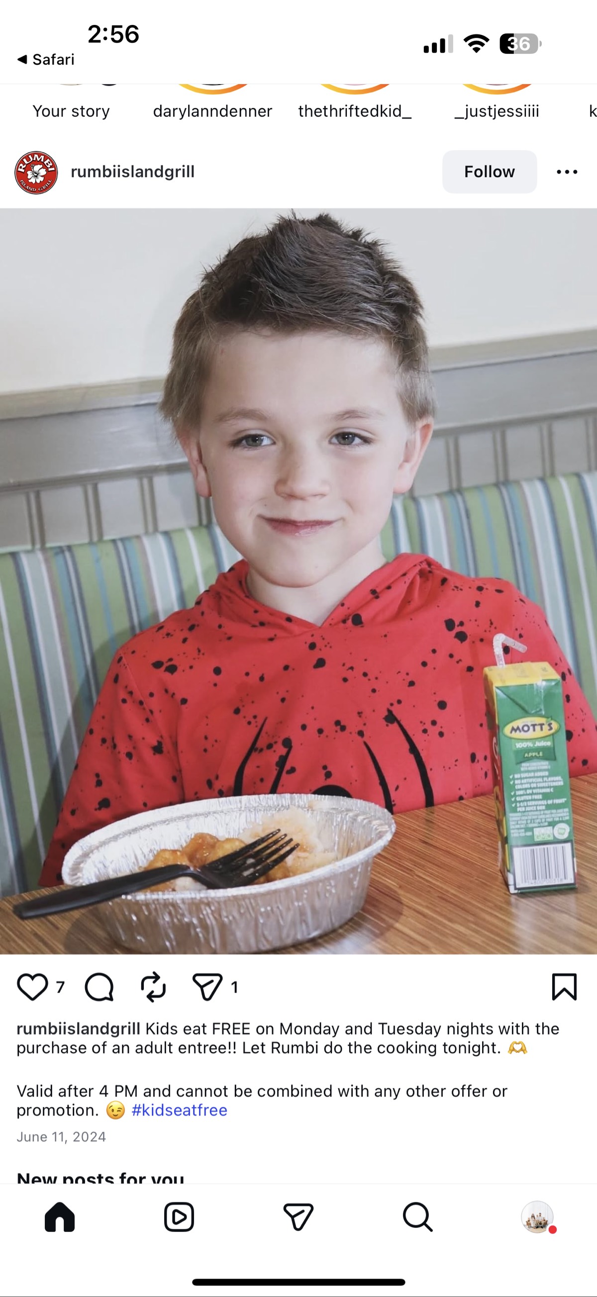 Kids eat FREE on Monday and Tuesday nights with the purchase of an adult entree. Valid after 4 PM and cannot be combined with any other offer or promotion.